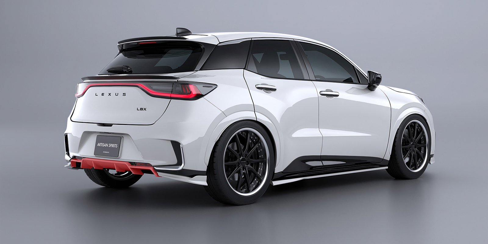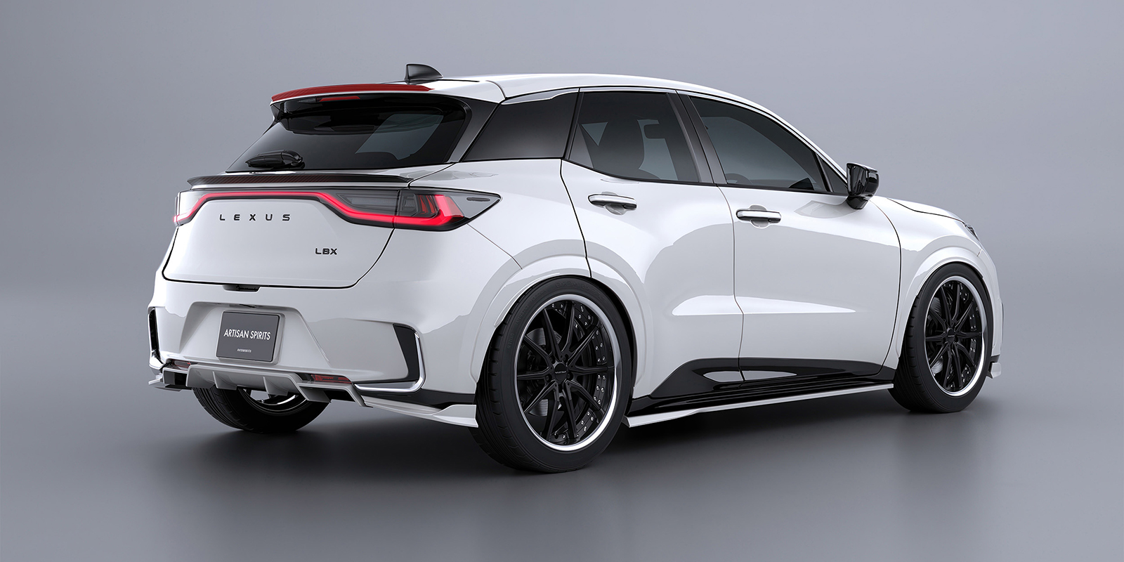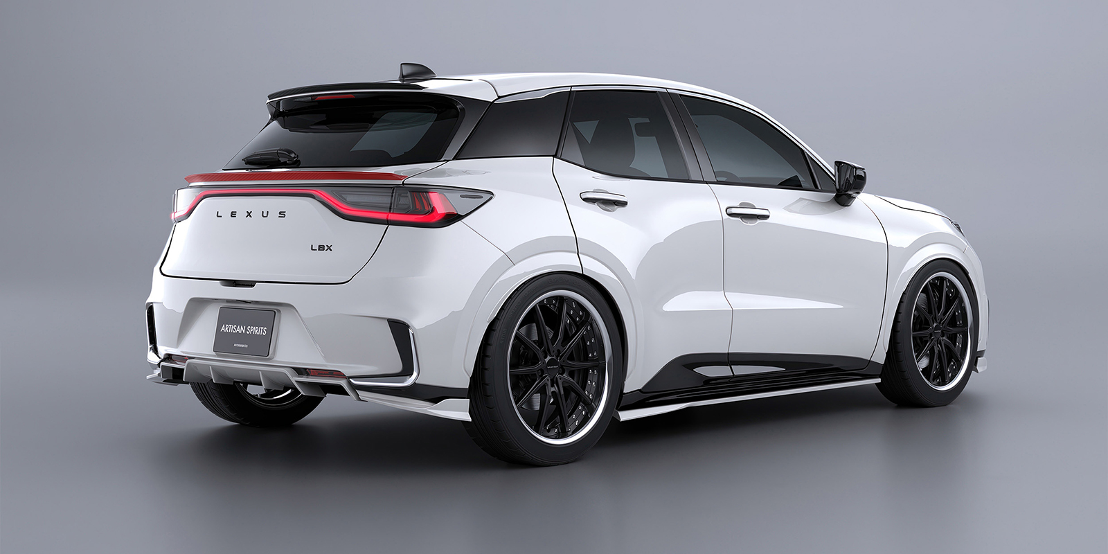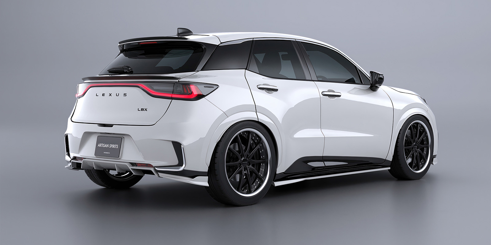 リアに向かって流れるラインが車輌に新たな表情を与え、スポイラー構造を「箱形状」にすることで