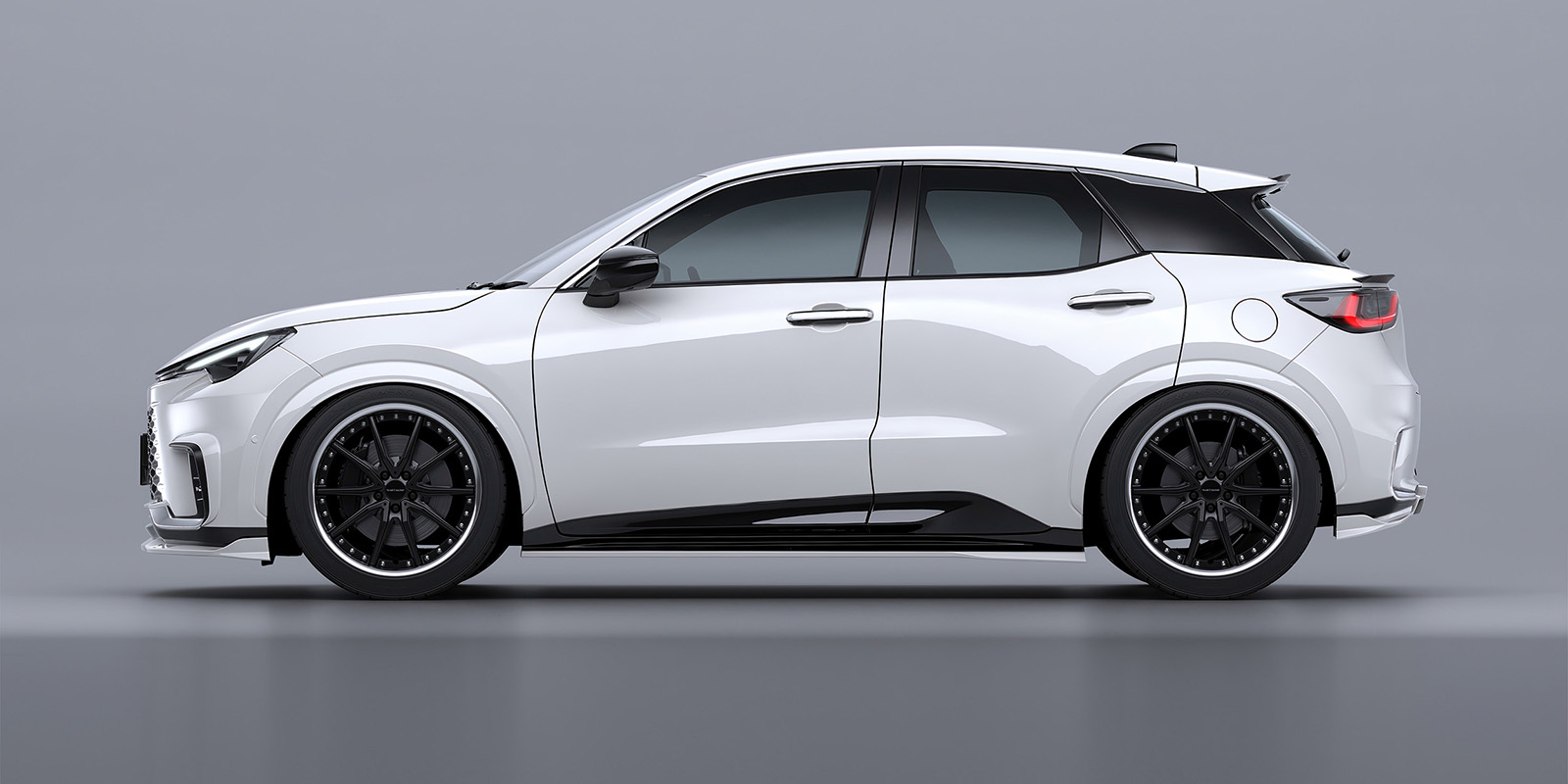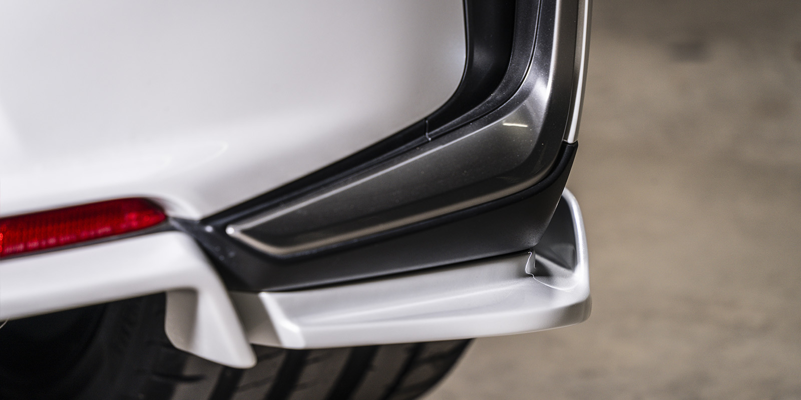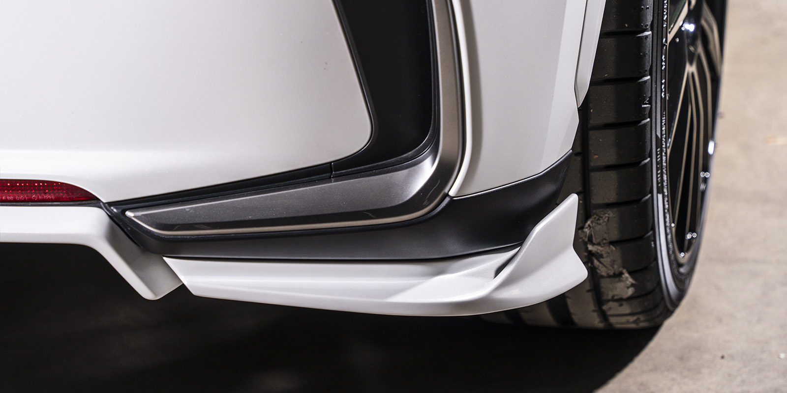 前方への突出を抑えることにより路面とのクリアランスを確保しパンバーとの「統一感」および「スポーツ性」も演出します